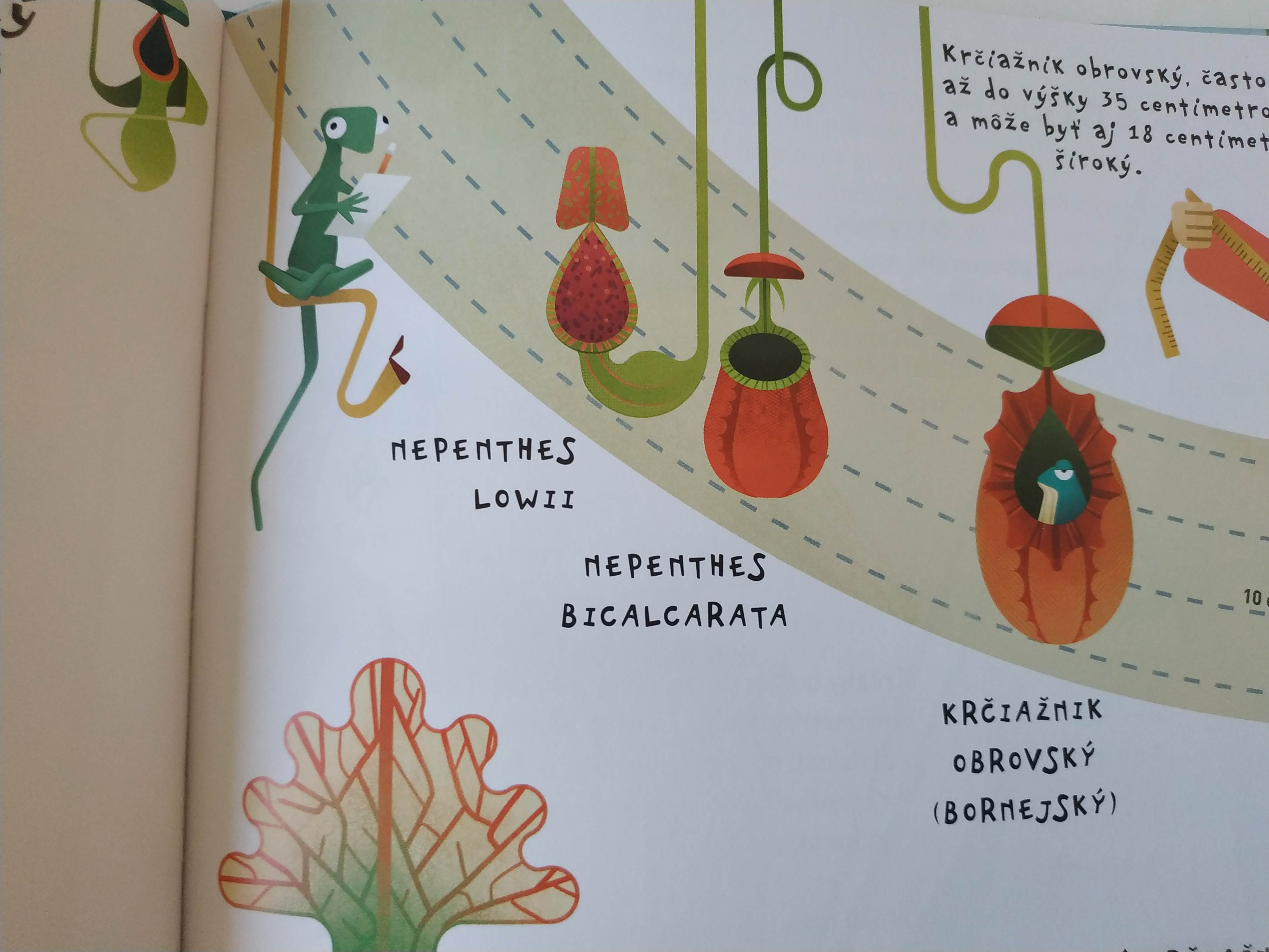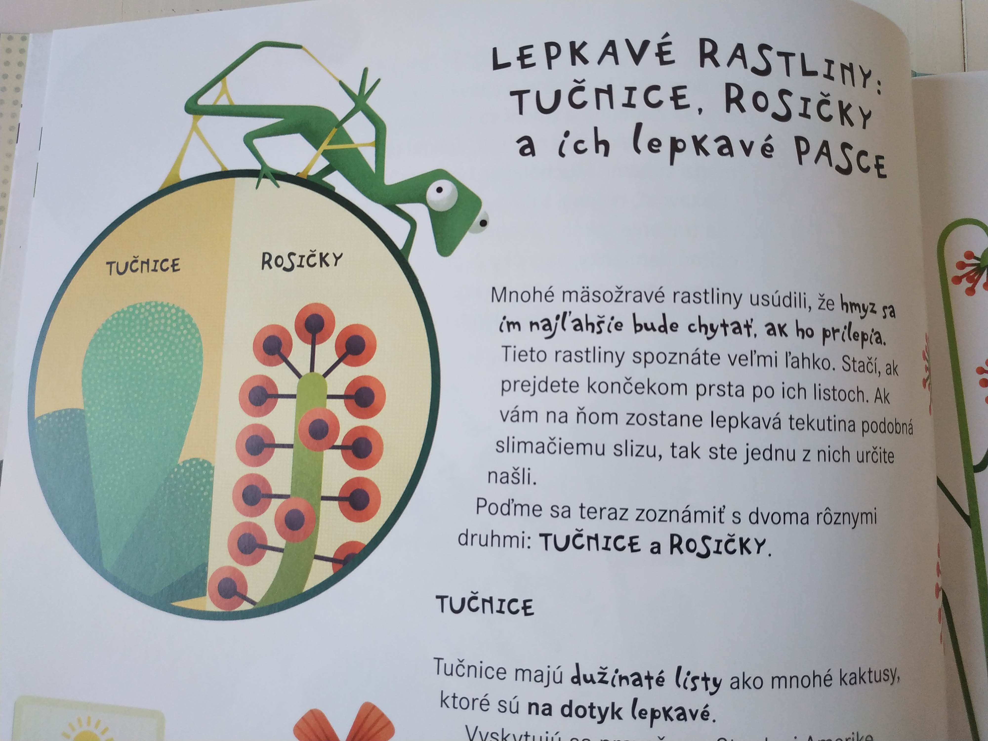 Určite dostanete pri čítaní knihy chuť nejakú mäsožravú rastlinku si zaobstarať, pretože knižka je naozaj lákavá návnada! Ja som chvíľu váhala, či knižku nedať veľkému (rozumej 20 ročnému) synovcovi, ktorý rád pestuje rôzne rastlinky. Myslím, že by si jeho srdce načisto polapila a určite by tiež nejakú muchopalku chcel. Mám rada knihy, ktoré podajú ucelené fakty z nejakej oblasti zábavnou formou, zaujmú čitateľa tak, že túži byť vedcom. Jediné, čo našej štvrtáčke trošku prekážalo – font zvýrazneného písma je roztancovaný a horšie sa jej čítalo.