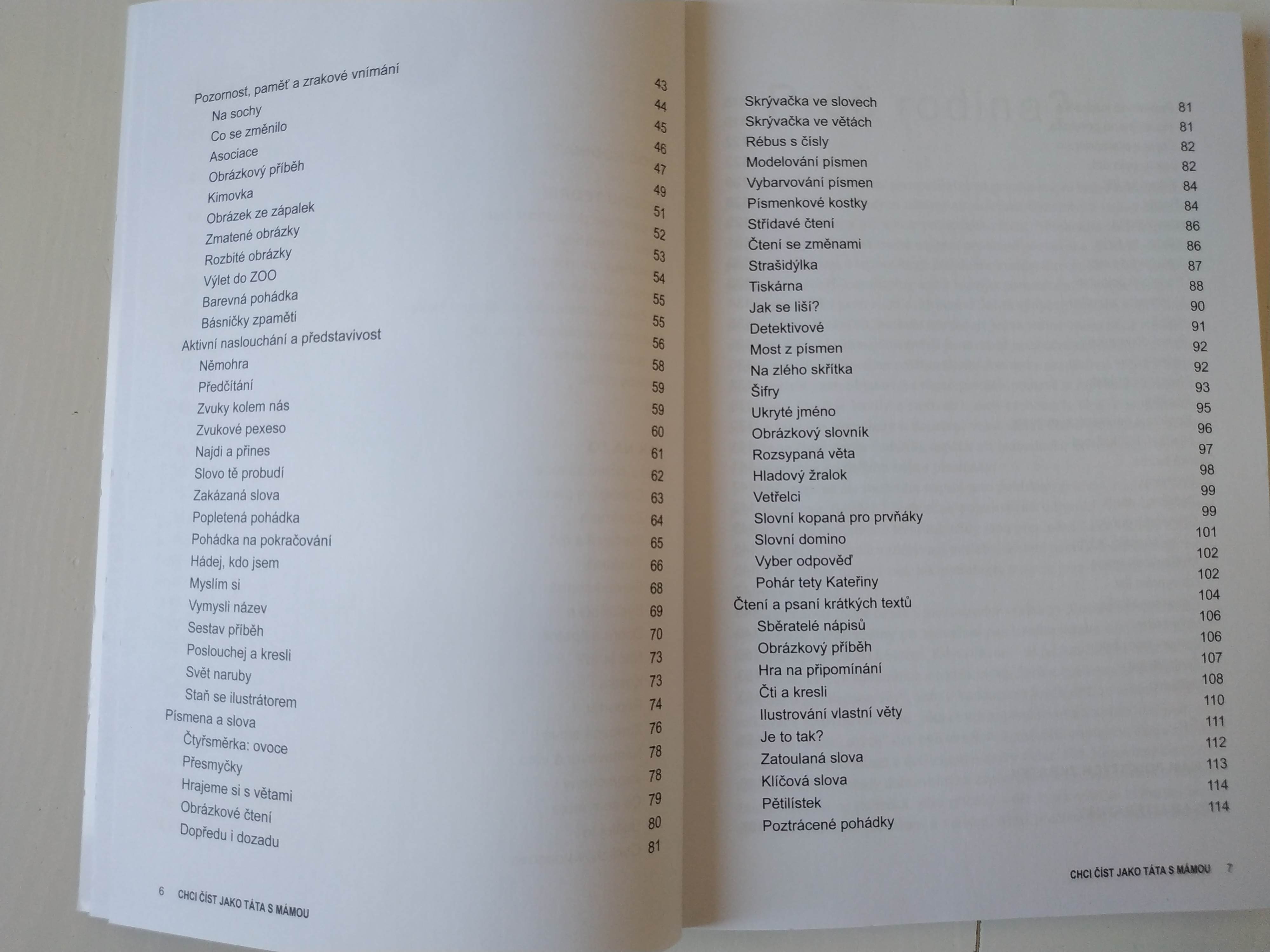 Ako z predošlého textu vyplynulo, verím, že cesta k samostatnému čítaniu vedie cez vybudovanie bohatej slovnej zásoby, zlepšovanie vyjadrovacích schopností detí, cez cvičenie ušiek pri počúvaní, ale aj cez rozvoj jemnej a hrubej motoriky. A hoci sa nám samostatné čítanie doma zatiaľ nedarí (dcéra je už štvrtáčka), nevzdávame to, čítame stále spolu. Nadšene som preto siahla po knihe Chci číst jako máma s tátou. Dúfala som, že nájdem nové nápady, nový motor, novú motiváciu aj pre mňa ako rodiča – uznajte, čítať dve hodiny nahlas Harry Pottera alebo Annu zo Zeleného domu, to je už dobrá záťaž na hlasivky…