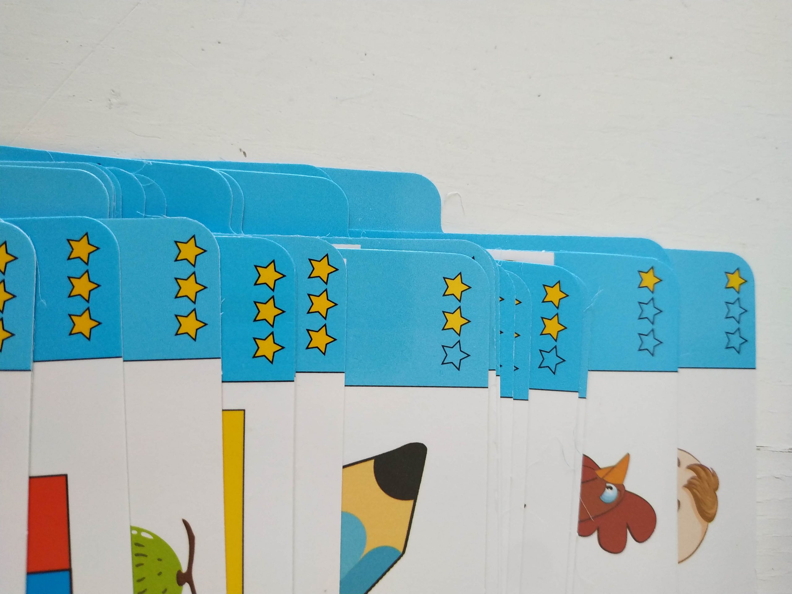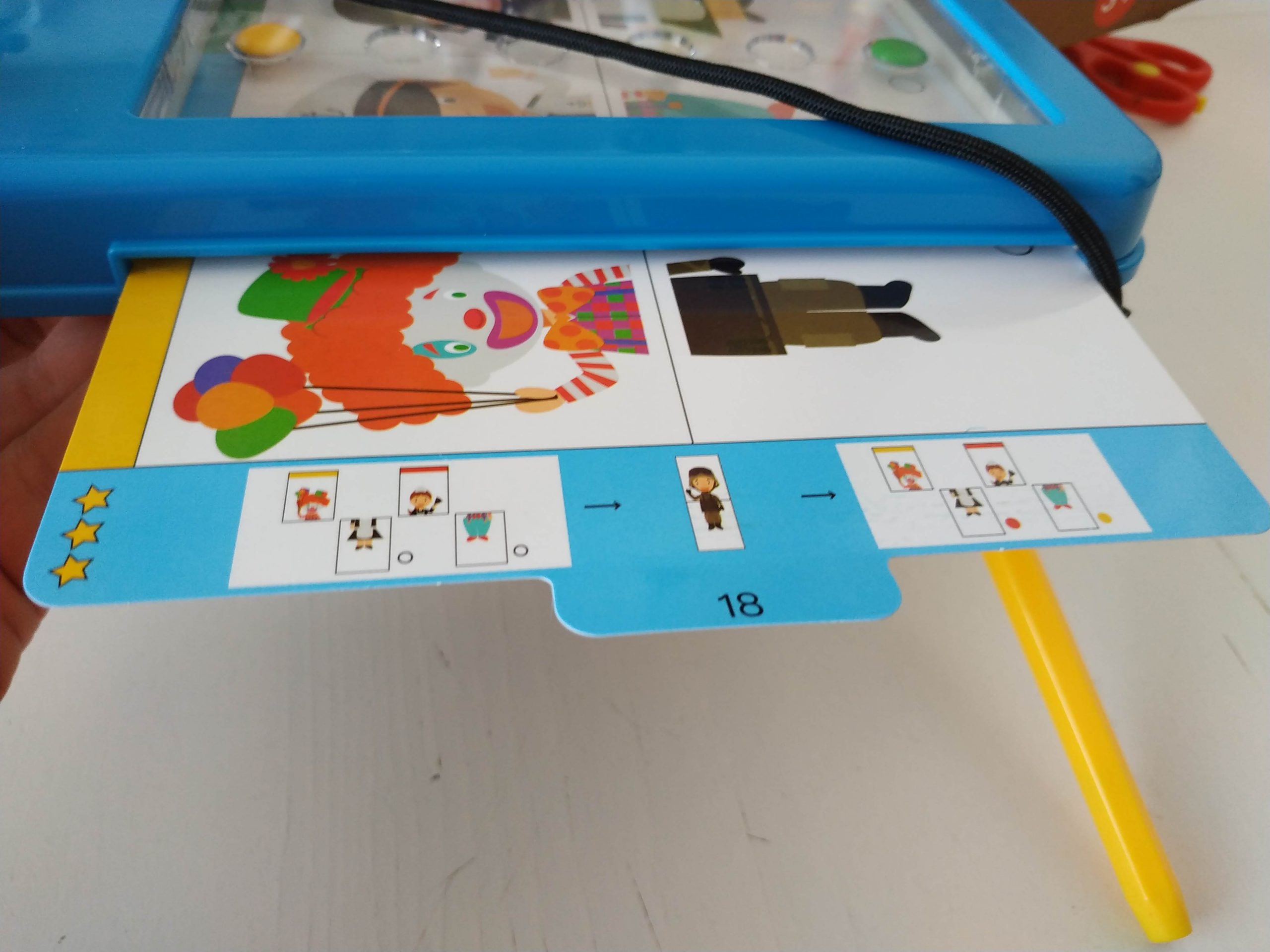 Pomocou magnetického pera dieťa vyznačuje správne odpovede na kartách umiestnením magnetky správnej farby do príslušnej jamky.