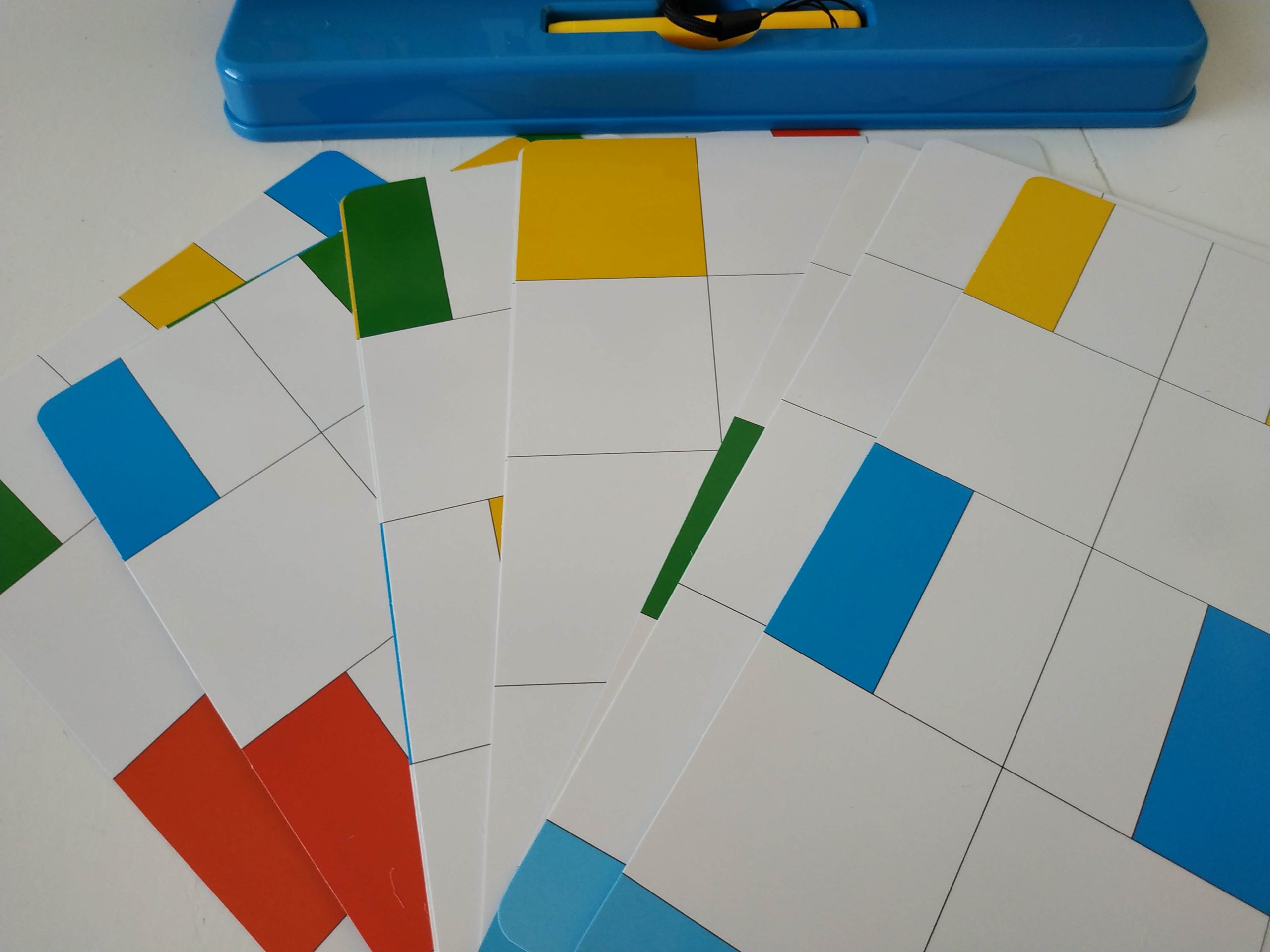Keď dieťa označí farebnými magnetkami správne odovede, list sa vyberie a dá znovu zboku do tabuľky, ale tentoraz obráteny z rubovej strany. Ak dieťa správne odpovedalo, prekrývajú sa magnety a farebné polia na liste (viď. obrázok nižšie.