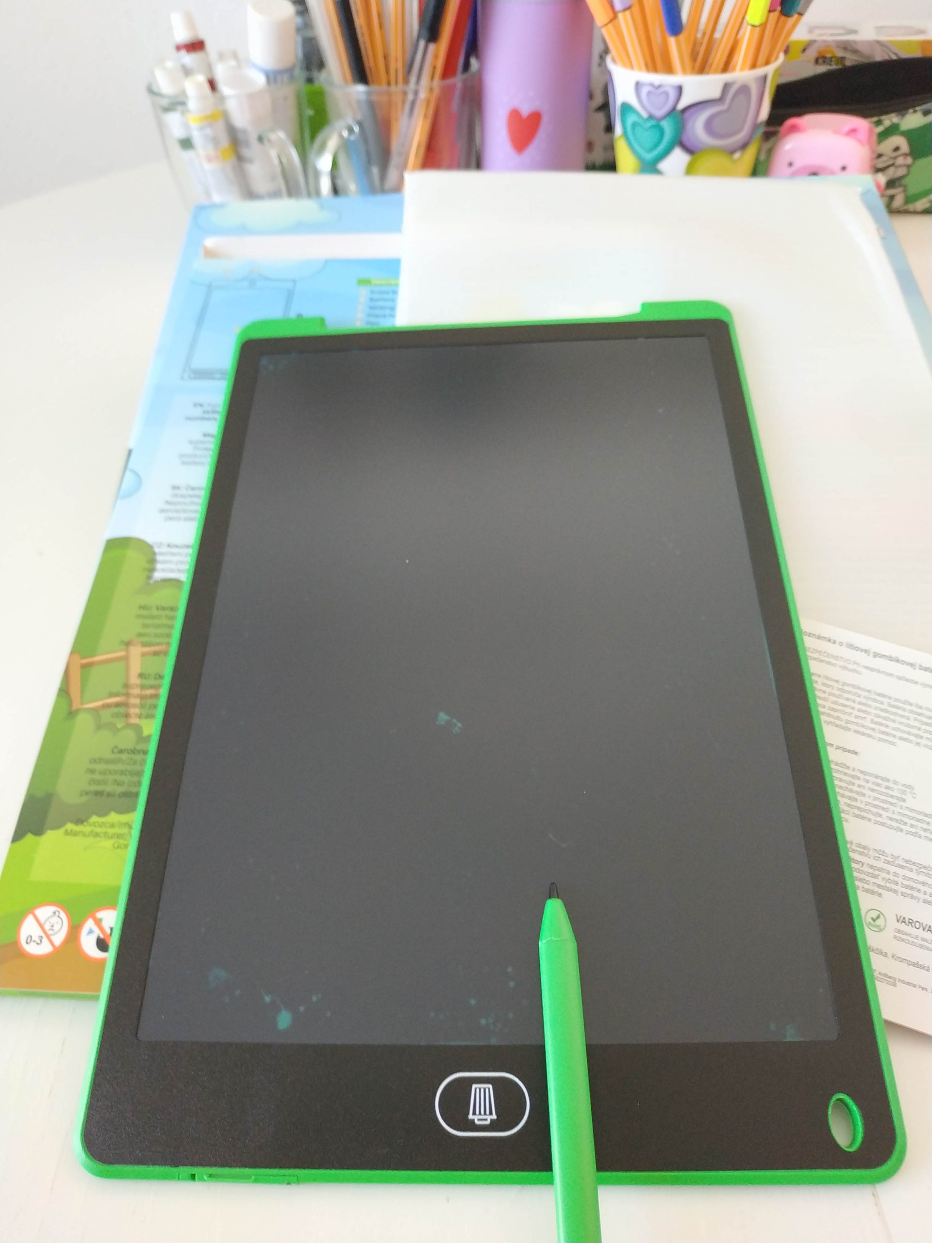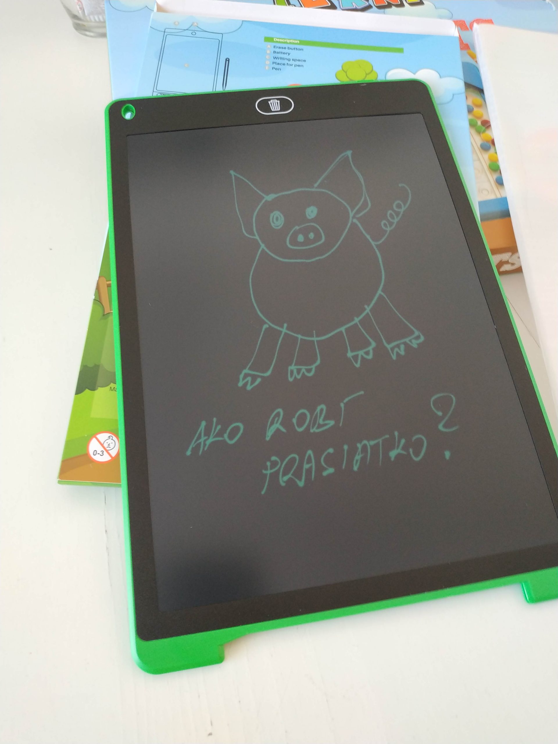 Tabuľku s radosťou otestoval náš ocko aj 11 ročná dcéra. Obom sa páčila a v prípade dcéry zahnala chvíľky s najväčšou prázdninovou nudou uprostred horúceho dňa, keď sa nedá byť vonku. Maľovania, kreslenia, čítania kníh aj sledovania seriálov bola presýtená, tabuľka bolo niečo nové, zaujímavé, ešte pár dní mi na nej nechávala odkazy v kuchyni, čo si želá na raňajky, večeru, že ju nemám ráno budiť a podobne 🙂